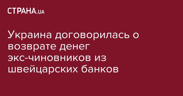 Украина и Швейцария договорились о процедуре возврата из швейцарских банков средств, незаконно выведенных бывшими государственными чиновниками.