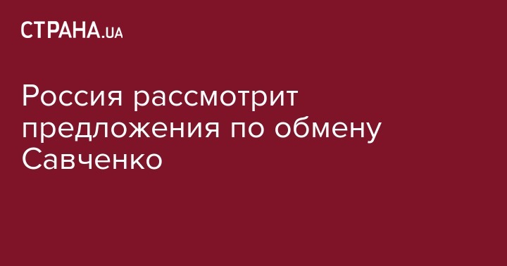 Россия заявляет о готовности рассмотреть предложения украинской стороны по обмену депутата Верховной Рады Надежды Савченко (фракция "Батьківщина"). Об этом сказал министр иностранных дел России Сергей Лавров на совместной пресс-конференции в Москве с министром иностранных дел Германии Франком-Вальтером Штайнмаером, передают "Украинские Новости".