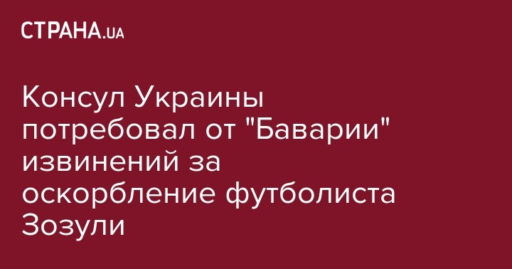 Генеральное консульство Украины в Мюнхене осудило проявления неуважения в виде обвинений со стороны фанатов футбольного клуба "Бавария" в адрес украинского футболиста Романа Зозули во время матча Кубка Германии "Бавария" - "Вольфсбург" 7 февраля. Об этом написал на своей странице в Facebook генконсул Украины в Мюнхене Вадим Костюк.