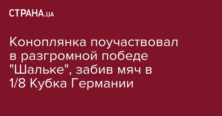 Полузащитник сборной Украины Евгений Коноплянка забил своей первый гол за гельзенкирхенский "Шальке" и помог клубу пройти в 1/4 финала Кубка Германии.