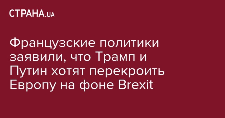Группа высокопоставленных французских политиков во главе с экс-премьер-министром Жан-Пьером Раффареном заявили, что Дональд Трамп и Владимир Путин на фоне Brexit попытаются перекроить карту Европы в соответствии со своими замыслами. Об этом пишет The Independent в статье Кима Сенгупта.