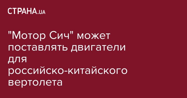Российские СМИ сообщили, что украинское предприятие "Мотор Сич" может принять участие в создании двигателей для тяжелого вертолета AHL, который совместно разрабатывают Китай и Россия. Об этом сообщает "Коммерсант".