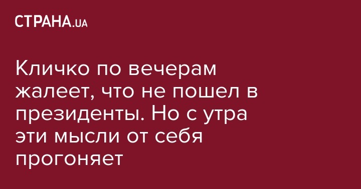 Мэр Киева Виталий Кличко жалеет, что не баллотировался в президенты. Об этом он заявил журналистам, сообщает "Радио Свобода".