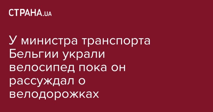 Министр транспорта Бельгии Бен Вейтс 14 февраля провел пресс-конференцию, посвященную расширению сети велосипедных дорожек и стал жертвой кражи. Мероприятие проходило в городе Халле (около 20 километров от Брюсселя) и министр приехал из столицы на велосипеде, который во время пресс-конференции украли. Об этом сообщает Meduza.