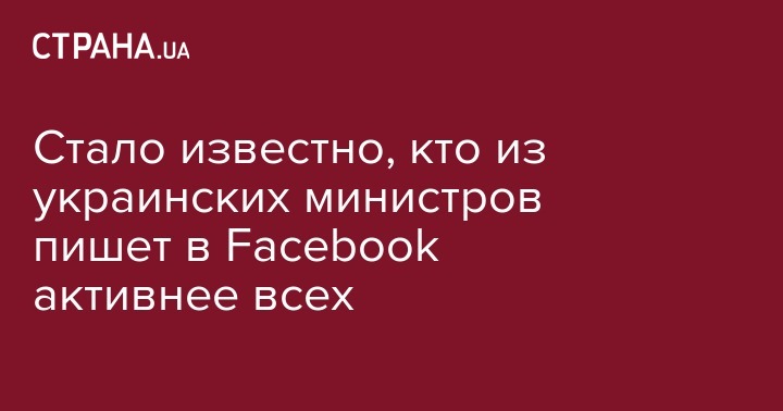 Комитет избирателей Украины назвал самых активных пользователей Facebook среди украинских министров, а также подсчитал, что 70% их сообщений написаны в рабочее время. Об этом говорится в отчете КИУ, размещенном в Facebook.