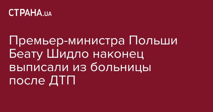 Премьер-министра Польши Беату Шидло выписали из больницы, где она находилась после ДТП в минувшую пятницу. Об этом сообщает "Польское радио".