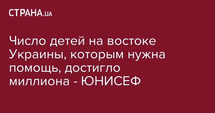 За последний год количество детей в восточной Украине, которые нуждаются в помощи, возросло почти вдвое - до 1 миллиона, а это почти вдвое больше, чем в прошлом году, передает Детский фонд ООН (ЮНИСЕФ).