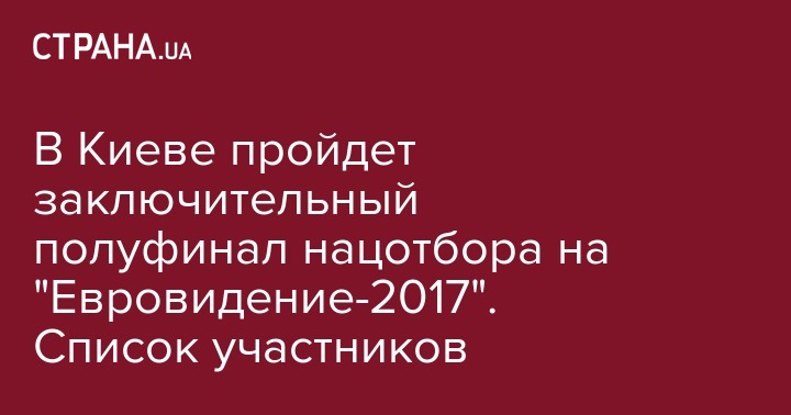 В Киеве пройдет заключительный полуфинал нацотбора на "Евровидение-2017". Список участников