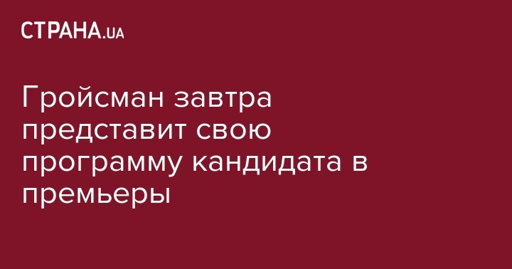 "На завтра планируется презентация программы кандидата в премьер-министры, господина Гройсмана. Эта программа будет презентована лидерам фракций", - заявил Сергей Соболев после совещания глав парламентских фракций в Верховной Раде.