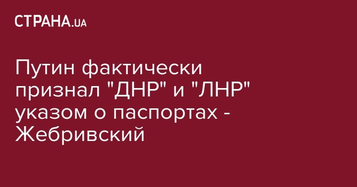 "Путин фактически признал так называемые "ЛНР" и "ДНР", чтобы он там не писал. Признание паспортов "республик", которых не существует – невозможно в юриспруденции. Это нарушение всех норм, которые только можно переступить", - сказал Жебривский.