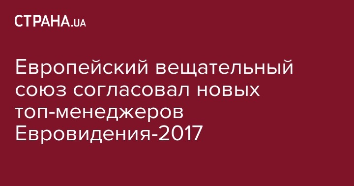 Европейский вещательный союз согласовал кандидатуры новых топ-менеджеров Евровиденья-2017. Об этом сообщает UA:Первый.