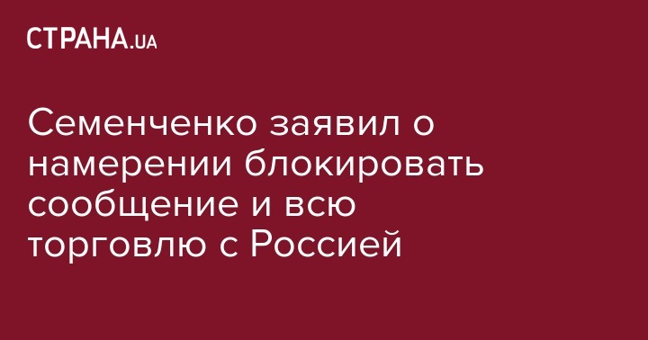 Нардеп Семен Семенченко заявил, что планирует расширить железнодорожную блокаду Донбасса и перекрыть сообщение с Россией. Об этом сообщает "Интерфакс Украина".