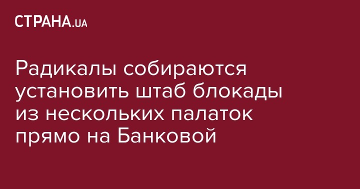 Участники митинга радикалов, организованного ОУН Николая Коханивского заявил, что собирается установить несколько палаток на Банковой, прямо около Администрации президента, чтобы организовать штаб блокады.