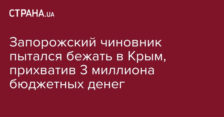 Глава одного из государственных предприятий в Запорожской области был задержан возле административной границы с аннексированным Крымом. Чиновник пытался скрыться после того, как присвоил себе почти 3 млн государственных средств. Об этом сообщает пресс-служба СБУ.
