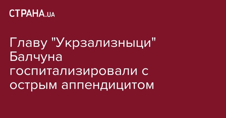Главу "Укрзализныци" Балчуна госпитализировали с острым аппендицитом