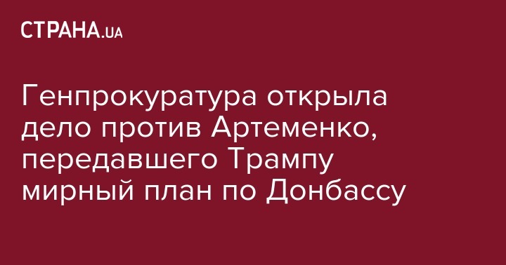 Генеральная прокуратура открыла уголовное производство по делу о госизмене в отношении народного депутата Андрея Артеменко за его мирный план по Крыму и Донбассу. Документ в Facebook опубликовал генпрокурор Юрий Луценко.