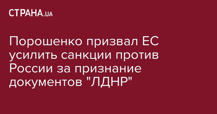 На встрече с с еврокомиссаром по гуманитарным вопросам Христосом Стилианидесом президент Украины Петр Порошенко заявил, что считает необходимым усилить санкции против России, которая признала документы "ЛДНР".