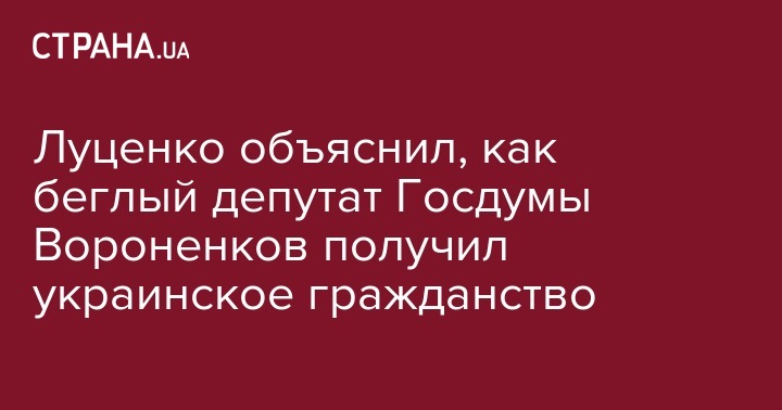 Генпрокурор Украины Юрий Луценко заявил, что экс-депутат Госдумы РФ Денис Вороненкова получил украинское гражданство автоматически, поскольку у него есть близкие родственники в Украине. Об этом он рассказал сегодня во время брифинга, передает "Украинская правда".
