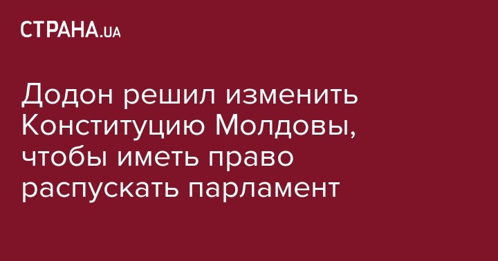 "Мы подготовим законодательную инициативу о внесении изменений в Конституцию, которые дали бы право президенту распустить парламент и назначить досрочные парламентские выборы. Если парламент это предложение отвергнет, то я не исключаю проведения референдума по этому вопросу", - сказал Додон.