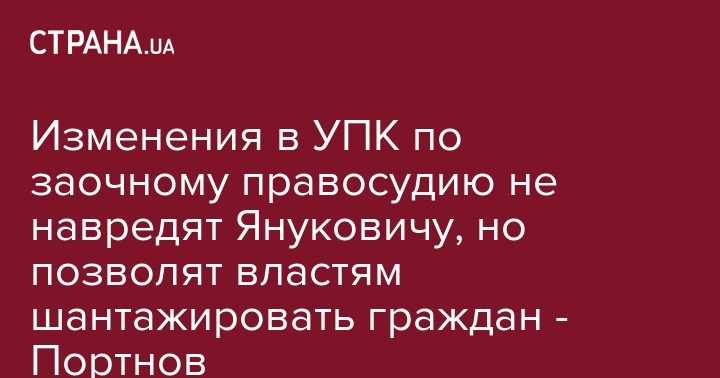 Бывший замглавы Администрации президента времен Виктора Януковича Андрей Портнов раскритиковал предложенные изменения в Закон о заочном правосудии, которые, по словам Порошенко, должны дать возможность передать в суд обвинения против Януковича. Об этом он пишет в Facebook.