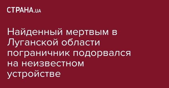 Найденный несколько дней назад мертвым на обочине дороги военнослужащий Луганского пограничного отряда погиб от взрыва неизвестного устройства. Об этом сообщил сегодня на пресс-конференции помощник председателя Государственной пограничной службы - пресс-секретарь Олег Слободян, пишет УНИАН.