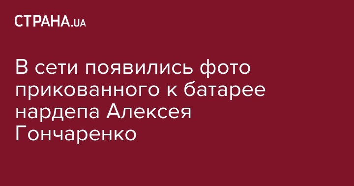 Коллега Алексея Гончаренко по фракции Владимир Арьев опубликовал снимки, на которых нардеп, похищение которого инсценировали спецслужбы, сидит прикованным к батарее, а на голове у него завернутый скотчем мешок. Фото нардеп выложил на своей странице в Facebook.