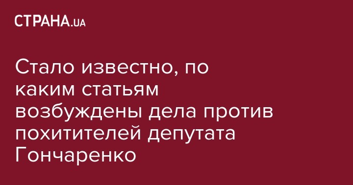 Трем задержанным по делу о похищении народного депутата Алексея Гончаренко (БПП) инкриминируют преступления по двумя статьям Уголовного кодекса Украины. Об этом сообщила пресс-секретарь Одесской облпрокуратуры Инна Верба, передает "Укринформ".