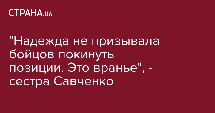 Вера Савченко, сестра Надежды Савченко по просьбе "Страны" прокомментировала обвинения со стороны нардепа от БПП Татьяны Рычковой, что, якобы, Надежда призывала военных бросить позиции под Донецком и идти на Киев.