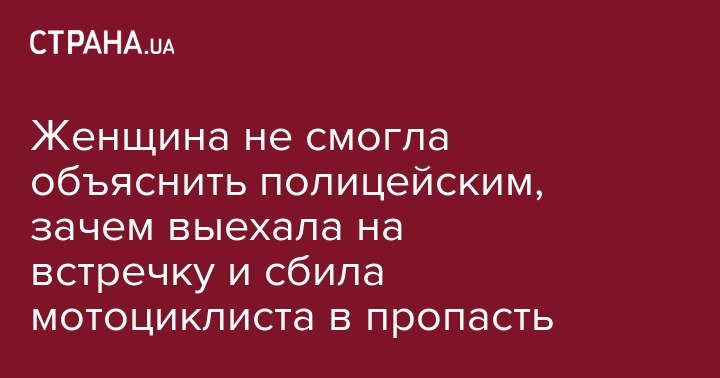 Мотоциклист из-за падения в пропасть, куда его сбило машиной после ДТП на горном участке автомобильной дороги в восточной части Тайваня. Как оказалось, его сбила "автоледи". Объяснить, зачем она выехала на встречную полосу движения та не смогла.