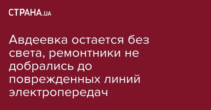 Сегодня, 25 февраля, электрики так и не смогли начать ремонтные работы в районе порывов ЛЭП около Авдеевки из-за отсутствия гарантий о прекращении обстрелов. Об этом сообщает председатель Донецкой военно-гражданской областной администрации Павел Жебривский на своей странице в Facebook.