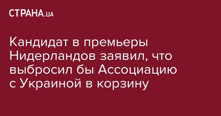 Кандидат в премьеры Нидерландов заявил, что выбросил бы Ассоциацию с Украиной в корзину
