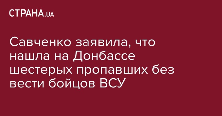 Савченко заявила, что нашла на Донбассе шестерых пропавших без вести бойцов ВСУ