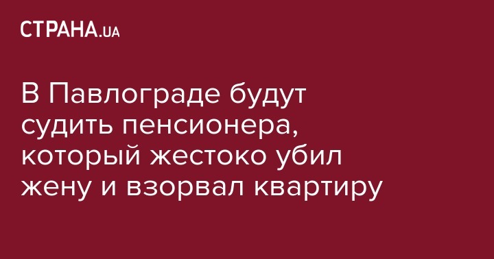 В Павлограде Днепропетровской области будут судить 60-летнего мужчину, который жестоко убил свою жену, а затем подорвал квартиру. Об этом сообщает пресс-служба Днепропетровской прокуратуры.