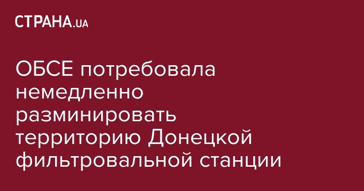 Представители миссии ОБСЕ потребовали немедленно провести полное разминирование территории в районе Донецкой фильтровальной станции.