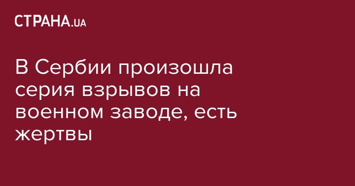 В центральной части Сербии, на складе с боеприпасами военного завода в городе Крагуевац произошла серия взрывов. Об этом сообщает портал B92 со ссылкой на Министерство обороны Сербии.