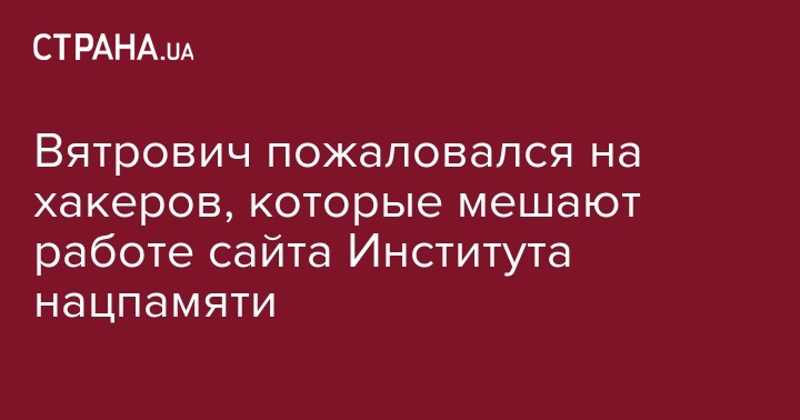 Глава Украинского института национальной памяти Владимир Вятрочив заявил, что сайт Института атаковали неизвестные хакеры. Об этом он сообщил на своей странице Facebook.