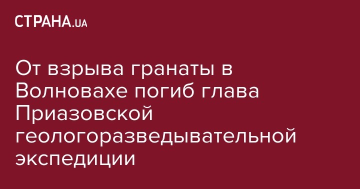 В пятницу, 3 марта от взрыва боевой гранаты РГД-5 в городе Волноваха Донецкой области погиб исполняющий обязанности руководителя Приазовской геологоразведывательной экспедиции.