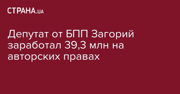 Депутат от БПП Загорий заработал 39,3 млн на авторских правах