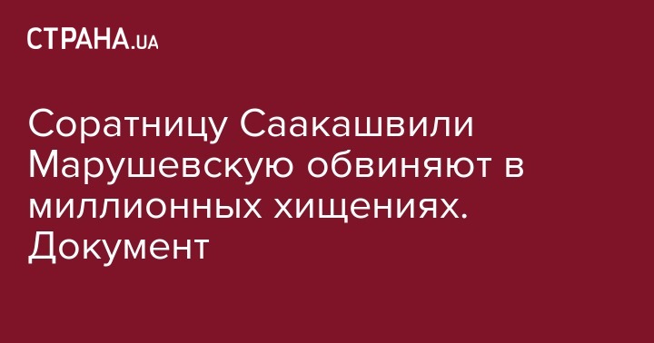 Бывшую главу Одесской таможни Юлию Марушевскую обвинили в нанесении ущерба государству на сумму 6,92 миллиона гривен. Об этом Марушевская написала на своей странице в Facebook.