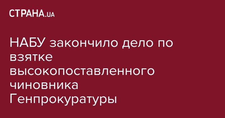 Национальное антикоррупционное бюро закончило досудебное расследование в отношении замначальника отдела Генпрокуратуры, который задержан по подозрению в даче взятки. Об этом сообщает пресс-служба НАБУ.
