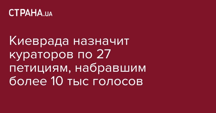 Сегодня в мэрии определят ответственных лиц по реализации 27 электронных петиций граждан, набравших необходимое количество голосов (более 10 тысяч). Об этом сообщает пресс-служба Киевсовета.