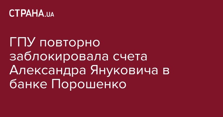 Генеральная прокуратура Украины (ГПУ) повторно заблокировала банковские счета Александра Януковича.