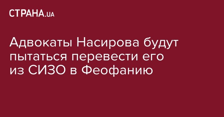 Защита отстраненного главы ГФС Романа Насирова будет пытаться перевести его из СИЗО в больницу "Феофания", из которой он не выписан. Об этом сообщает УНИАН.