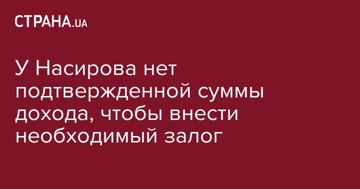 У отстраненного главы ГФС Романа Насирова нет подтвержденной суммы дохода, чтобы внести необходимый залог в 100 миллионов гривен, который ему присудил суд.