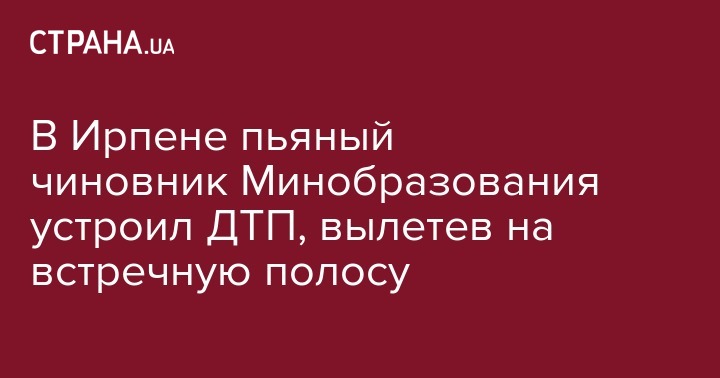 "Ночное ДТП под Киевом в Ирпене: пьяный сотрудник министерства образования на Renault вылетел на встречную полосу и врезался в автомобиль ВАЗ. Водителя ВАЗ госпитализировала скорая", – сообщает издание.