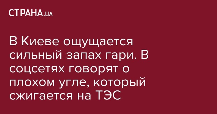 Как написал на своей странице в Facebook директор Центра экологической стратегии Глеб Вышлинский, запах гари может быть связан со столичными ТЭЦ, которые могли перейти на неочищенный уголь.