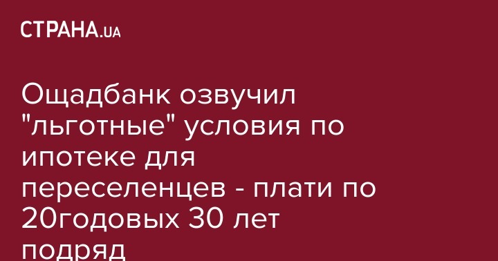 Ощадбанк разработал льготную ипотечную программу для вынужденных переселенцев, где предложил им оплачивать жилье до 30 лет с фиксированной ставкой в 20% годовых. Об этом сообщает пресс-служба банка.