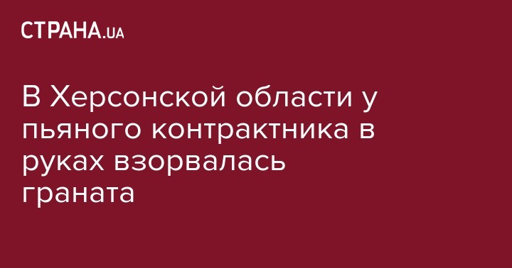 В Херсонской области во временном лагере воинской части у села Новониколаевка под Скадовском у пьяного контрактника в руках взорвалась граната. Об этом сообщает местное издание "Херсонцы".