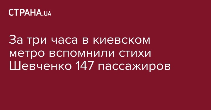 Коммунальное предприятие "Киевский метрополитен" бесплатно провезло 147 пассажиров за чтение ими стихов украинского поэта Тараса Шевченко 9 марта.