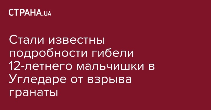 Полиция открыла уголовное производство по факту гибели в Угледаре 12-летнего подростка, в руках у которого взорвалась граната. Об этом пишет пресс-служба ГУНП в Донецкой области.